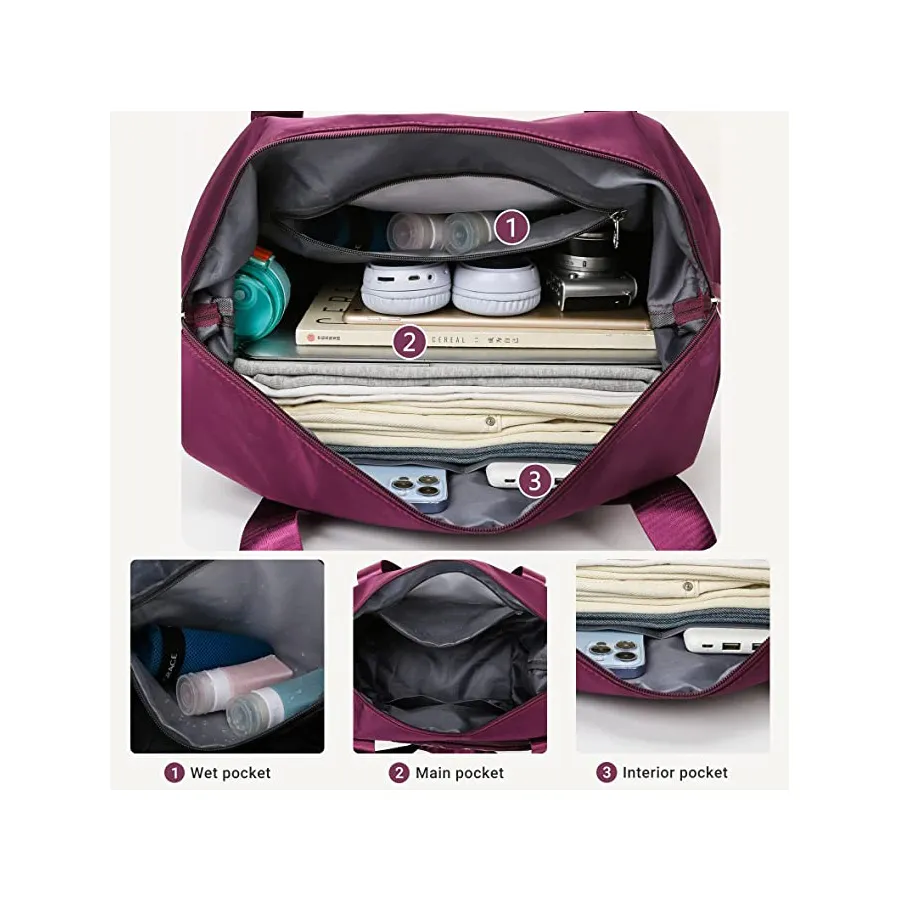 Hong Fu Large Capacity Foldable Travel Duffel Gym Sports Bag-F014(Maroon)