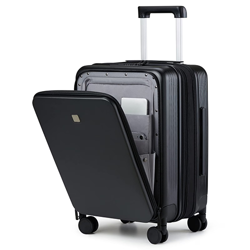 - 4 double spinner wheels provide 360 degree rolling maneuverability through crowds and airports.