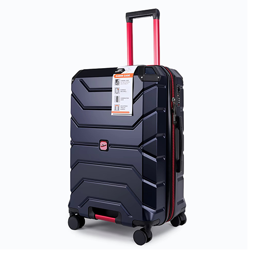 - 4 double spinner wheels provide 360 degree rolling maneuverability through crowds and airports.
