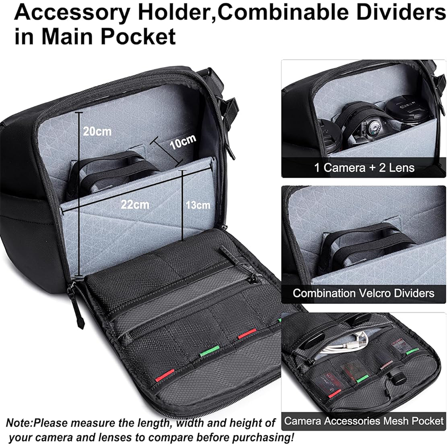 -storage space for camera, batteries, lens, etc.