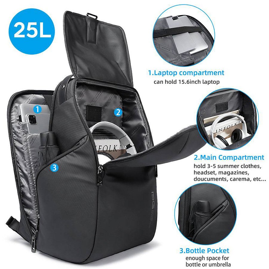 Bange BG-2581 Multifunction 15.6" Business Travel Backpack(Black)