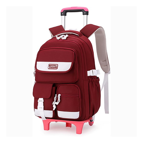 Jincaizi High capacity kids Rolling Trolley School Travel Bag-004(Maroon)
