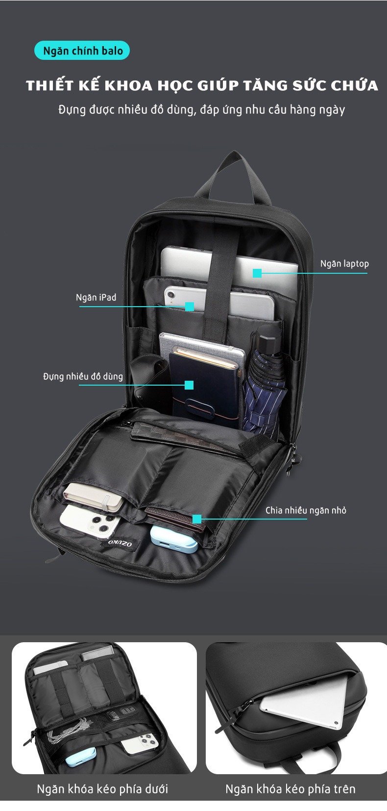 - The OZUKO 9474 laptop backpack boasts a modern, robust design with a sturdy structure and masculine colors. The high-quality Oxford fabric and Polyester lining are not only durable but also waterproof, protecting your electronic devices and belongings from rain or moisture.